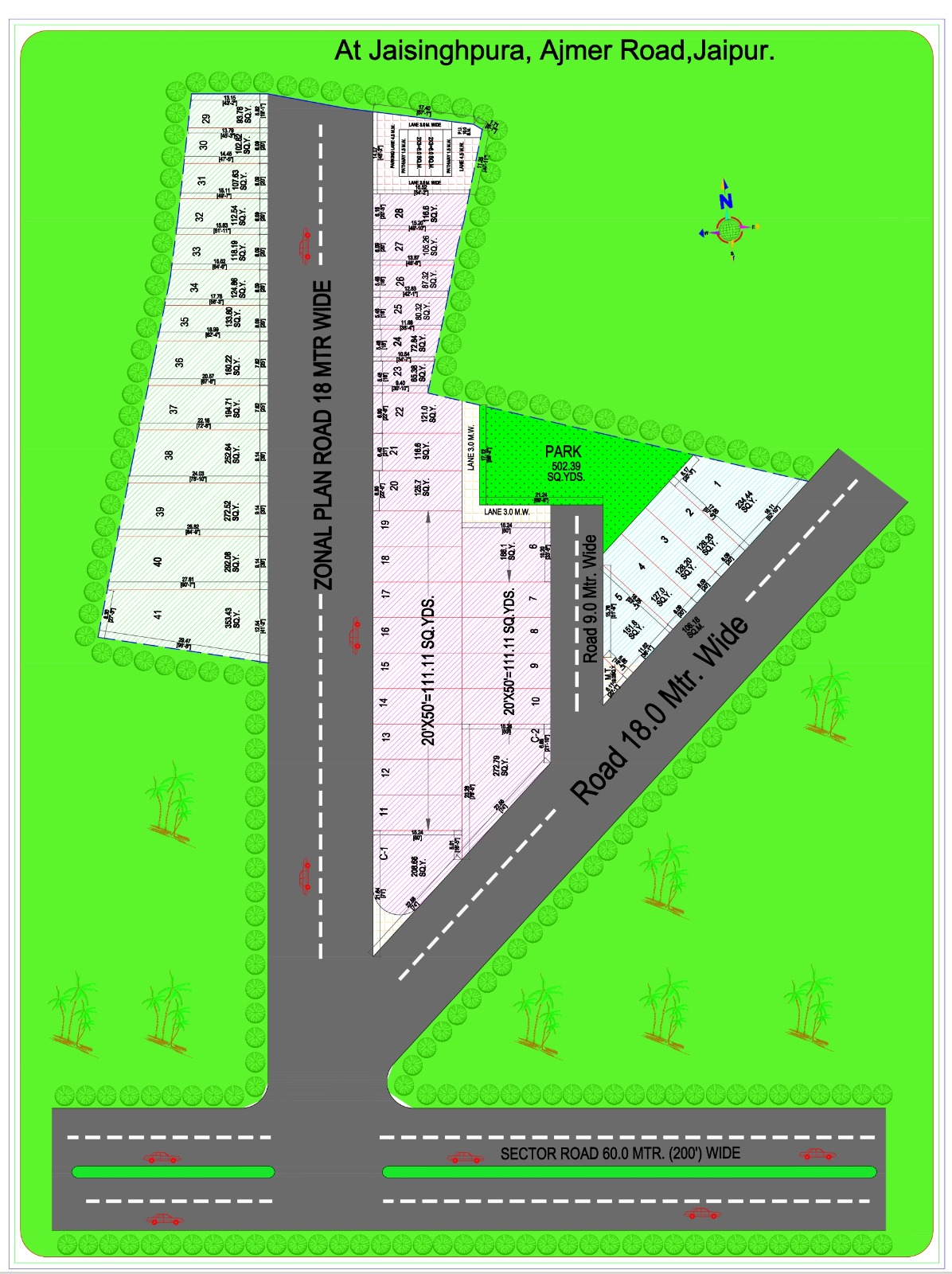 Kedia's Parwati Meadows is located in Jaisinghpura, that is among Jaipur’s fastest-growing residential and commercial zones, located just off Ajmer Road and connected directly to the Jaipur Ring Road. The area has evolved into a vibrant suburban hub due to its excellent connectivity, affordable property options, and upcoming infrastructure projects. Majority of plots of the scheme are situated on 200 and 60 feet road.